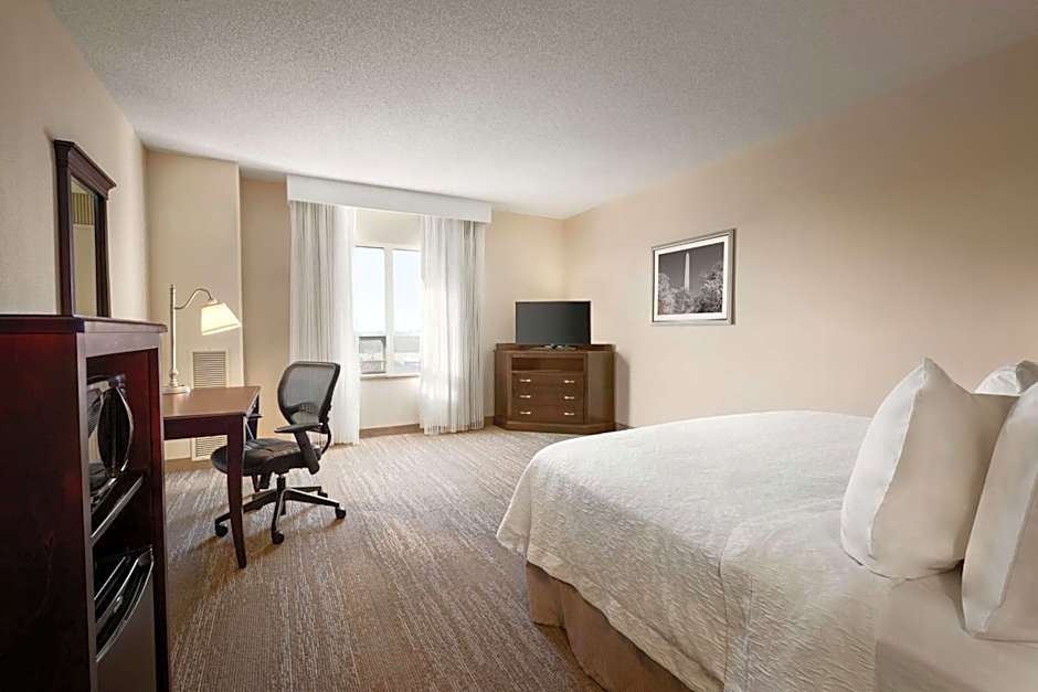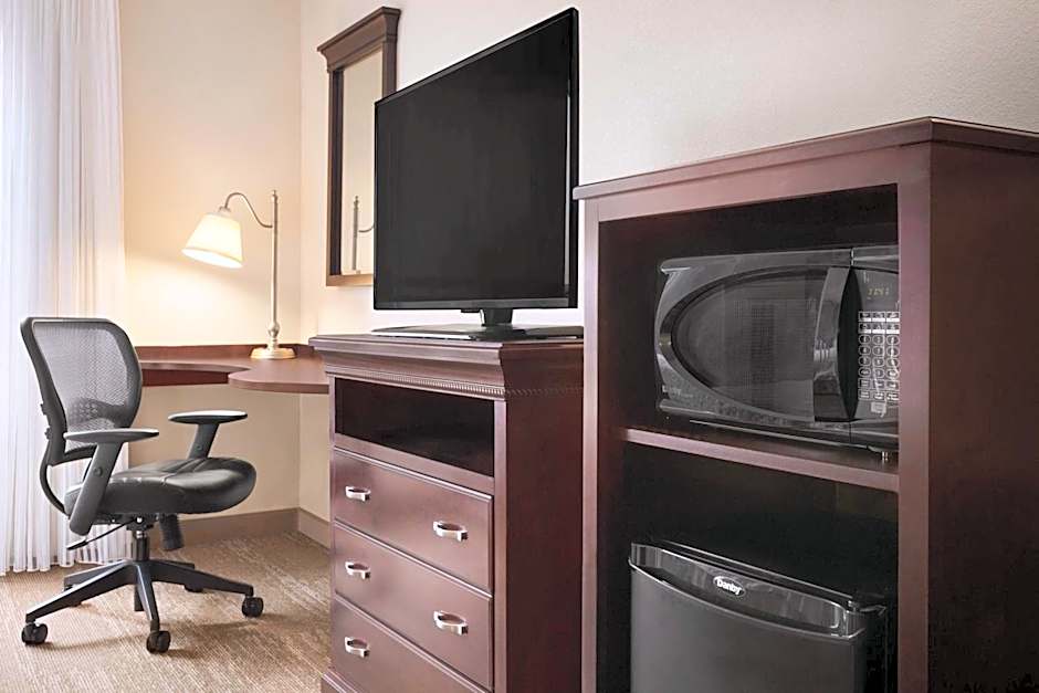 This nonsmoking hearing accessible room features one king bed, a desk and a coffee maker. The room also has a visual alarm, and notification devices for the doorbell or door knock and incoming phone calls. Guests will also enjoy complimentary WiFi.